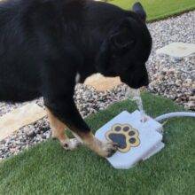Teach your dog to step onto the printed-paw pattern of the water fountain to dispense water. Each purchase includes some training instructions you can follow to ease your pooch into using the fountain. With time, he or she will be stepping on the fountain pedal naturally for a sip of water!