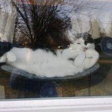 Sam is by far the biggest cat I’ve ever had the pleasure of owning. He loves to snuggle his large self into the bed and watch the goings on in the yard, tease the dog and harass the squirrels .. kitty nip was used for enticement the first few uses but after that he was enjoying with no added treats.