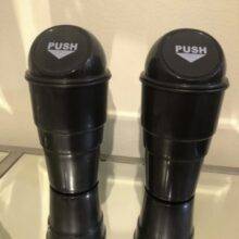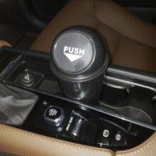 I always use a small trash bag in my car. My husband hates to have a trash bag. I bought a set of these compact trash cans. The size is perfect for a cup holder. The size allows for fairly large pieces of paper, wrappers, and other trash. Press the opening for easy disposal. When full, empty the contents and rinse the plastic as needed. Even my husband loves the design, convenience, and tidy appearance. So, we both approve.