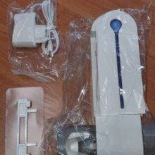Thank you very much! Fully complies with the description. Came without a box, but in a powerful package. Everything works. As in reviews-after the work of the ultraviolet there is a characteristic smell. Plastic to the touch pleasant. Perfect holder for 5 brushes and pulling paste. It's true, it's necessary to set up the tube. Very nice looks in the bathroom. Wire with European plug-short-90 cm. I definitely recommend the store and the goods