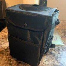 This trashcan works well in our SUV. With three kids and a busy schedule we often eat snacks or food in the car. This is the third trashcan I’ve now bought for a vehicle, and this one they got it right. The size is good and holds quite a bit. The thing I like the most is the top you don’t actually have to undo it or do anything to access the trash can you just push it in the top. My kids broke the last one by stepping on it too many times, and this one actually is elevated off the ground which makes less of a tripping hazard. You can also put a trash liner it so you can just take out the whole bag of trash out quickly and easily. It also had like a bungee cord on it if you didn’t want to use the strap if you wanted to utilize it somewhere else. I put it around my center console so it could be utilized in the backseat.