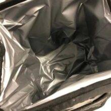 Whether half-finished drinks or napkins from a nasty spill, you can dispose with confidence knowing that the waterproof liner won’t drip or leak.