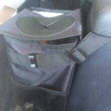 This is a well constructed and sturdy trash bag. The 2 features that I like best are the multiple straps so you have a few different ways to secure it and that it has clips to secure a plastic grocery bag inside for easier clean up. The velcro top with the unique opening allows you to easily place things inside one-handed, but keeps them well contained and out of sight.